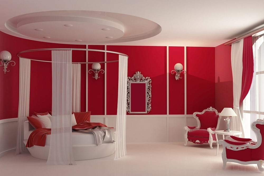 ديكورات الأسقف الجبسية ويتميز بعدة سمات أهمها شكله الانسيابي المريح للعين، كما يمكن تصميمها بحجم موافق لحجم السرير خاصة ذو الشكل الدائري لتسليط الإضاءة عليه، يمنحكِ السقف المتدلي بصفة عامة أيضاً مكان مثالي لإخفاء وحدات الإنارة للحصول على إضاءة خافتة مناسبة لأجواء