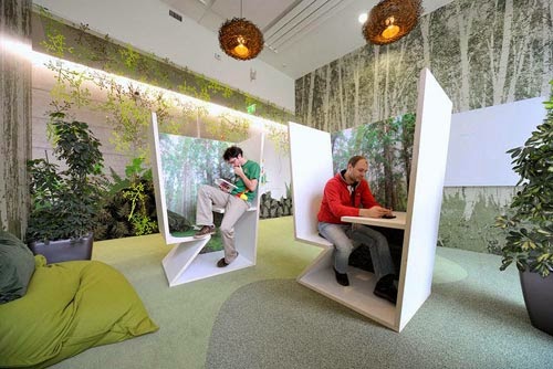 بعض المكاتي تكون خانقة ومملة بحيث ان بيئة العمل مهمه لكل موظف يعمل من الساعه 7 صباحا وحتى 4 عصرا خصوصا عندما يكون عمل الموظف فيه نوع من التعب والمشقه. فالبيئة التي يجد فيها الموظف جمال في التصميم وروعه في اختيار الالوان تساعده على الراحة النفسية وتجعله يعمل بشكل افضل. <a name=\'more\'></a>ولذا نعرض عليكم أماكن تميزت في غرابة وجمال تصميم الأثاث .