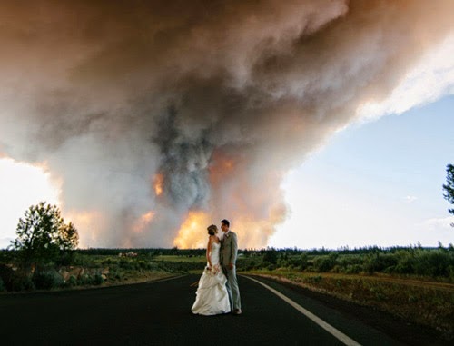 شهدت ولاية أوريجون واقعة غريبة، فبعد أن اختار العروسان Michael Wolber وApril Hartley مكان التصوير بعناية واهتمام حدث حريق هائل والذى كان سيفسد زواج العروسين، لكنهما بدلًا من ذلك رأيا فى هذا المنظر صورة رائعة، حيث قام المصور Josh Newton باستغلال هذا الحدث لالتقاط صورهم.