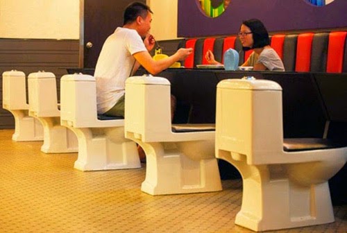 لولا إبداعهم، ما تجمعت لدينا كل هذه الاختراعات والاكتشافات، وخاصة بعد الحاجة إلى التفكير الإبداعي الذى صار ملحًا في كل عصر من العصور الماضية، حيث نقش كل مبدع اسمه في الذاكرة الإنسانية على مدى العصور. وفي محاولة للخروج عن الطبيعي والمألوف وتحقيق الإبداع في التفكير، انضم إلى قائمة المطاعم حول العالم مطعمالمرحاض بالصين، الذي سيدهشك من غرابة تصميمه، يجعلك تشعر منذ اللحظة الأولى لدخوله أنك داخل المرحاض.<a name=\'more\'></a>صمم المطعم وكل جزء صغير فيه مستوحي من شكل المرحاض حتى الأواني والأطباق التي يتم تقديم الأطعمة فيها، شاهد الصور واحكم بنفسك.