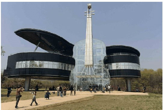 في بناية البيانو، كيف يمكنك الصعود إلى الطوابق العليا؟ ببساطة، عليك استخدام مصعد آلة الكمان... هذه البناية الموسيقية الشكل تم إنشاؤها في ... محافظة أو هوي الصينية عام 2007 أرادت الحكومة المحلية بناء شيء مميز لتحويله إلى نقطة جذب سياحي... في داخل المبنى معرض دائم للمناطق الطبيعية الجميلة في المحافظة