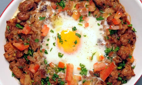 - أحضري وعاء وضعي فيه البيض والملح والقليل من الفلفل الأسود واخفقي جيدا بالشوكة، ثم اسكبيه فوق الفول وقلبي بشكل مستمر حتى ينضج البيض جيداً.