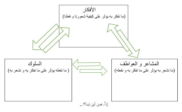 إذ أنه لدى قراءتنا للشرح الموجود في الصورة ، فسنعرف أنه يوضح أن ما نفكر به يؤثر على ما نشعر به و نفعله.
