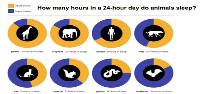 تميل الحيوانات الأكبر حجمًا إلى الحصول على قسط أقل من النوم أقل من الحيوانات الصغيرة ، وتلك التي ترعى تنام أقل من الاخرين . إليك طرق النوم لدى الحيوانات والتي تحتاج إلى أقل او أكثر قدر من النوم: