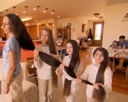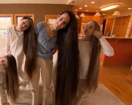 جذبت الأمركية "تيرلين راسل" أنظار وسائل الإعلام المختلفة بسبب طول شعرها، الذي يبلغ 108 سم، وقد ورثت بناتها الثلاث نفس شعر الأم المسترسل. وتقول "راسل" إن طول الشعر هذا يحتم عليها وعلى بناتها بعض القوانين الصارمة، فهم لا يتركن شعرهن مسترسلاً أبداً في المطبخ، وتنفق الأسرة الكثير من الأموال على الشامبو ومستحضرات غسل الشعر، وفقاً لما ورد في الـ"ديلي ميل" البريطانية.<a name=\'more\'></a>وقد تبرعت "راسل" من قبل مع بناتها بعينة من شعرهن لأحد المراكز المتخصصة في عمليات زراعة الشعر، وتقول "راسل" إنها امتلكت شعراً طويلاً يتخطى الخصر منذ طفولتها المبكرة لعوامل وراثية.