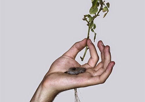 فنان إسباني يده لحديقة متنقلة من خلال استخدام كفه كوعاء نباتات. وذكر موقع "هافينجتون بوست" الأمريكي، أن الفنان "ديفيد كاتا" جعل يده تبدو وكأنها غصن ورد يمشي في مشروعه "الجذور المجنحة".