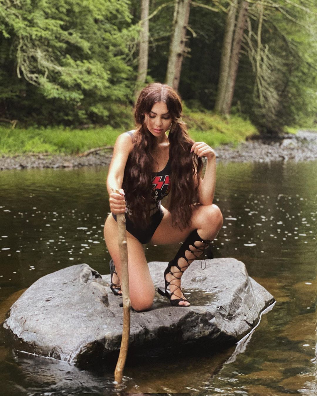 احدث صور المطربة قمر بالمايوه الاسود ، صور جلسة تصوير المطربة قمر على انستقرام