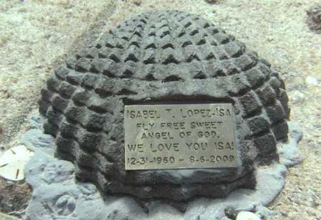 بدلا من نثر رماد الموتى عشوائيا في مياه المحيطات، يمكن للعائلات دفن رماد موتاها في مقبرة نبتون ميموريال ريف، حيث يتم خلط الرماد مع اسمنت خاص وبناء نصب تذكاري للمتوفي. يقوم الغطاسون بعدها بتثبيته في القاع مع لوحة من النحاس يدون عليها تفاصيل المتوفي. ومن ثم يلتقطون صوراً للضريح حتى تحتفظ بها الأسرة في ألبوماتها.