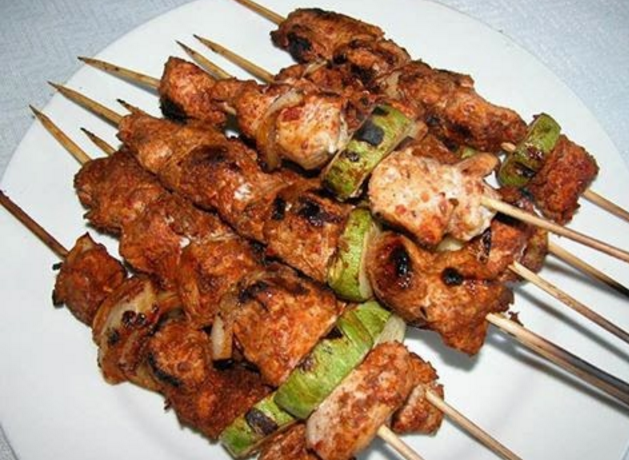 شيش طاووق قطع دجاج مع البصل والفلفل الرومي